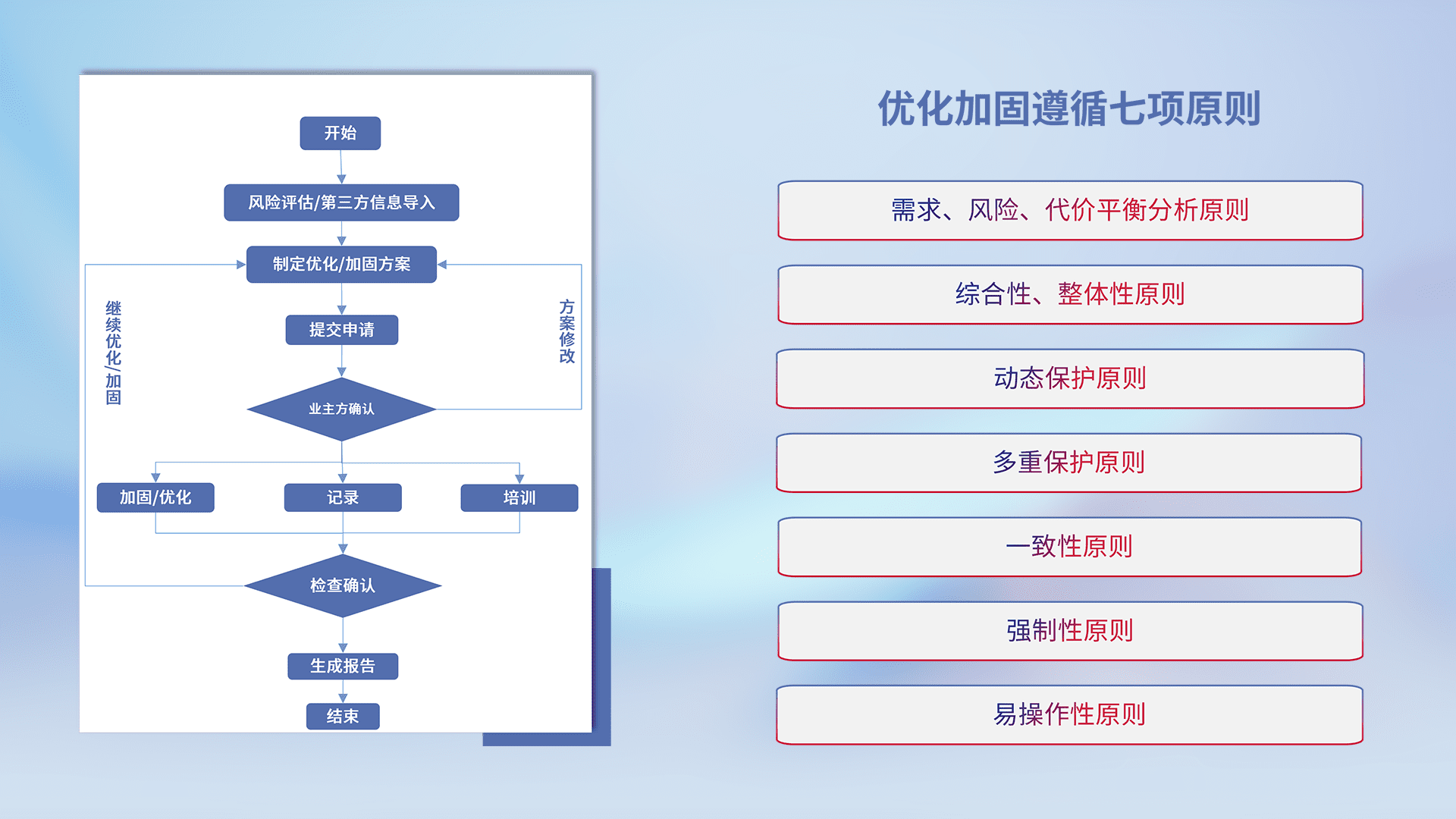 最大程度利用现有资产,,,,对评估发现的问题进行封堵与整改,,,防止漏洞被利用,,提升整体网络安全性,,,,为客户带来高标准的优化加固服务。。。